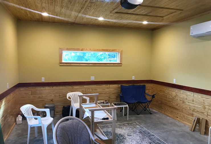 Custom garage addition for storage and car lift.